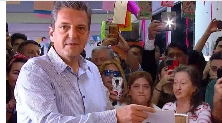 El ministro de Economía y candidato de Unión por la Patria, Sergio Massa, llegó a las 12 en punto a la Escuela EP N°34/ES N°45 de la localidad bonaerense de Tigre.