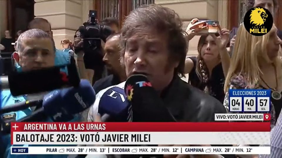 Luego de sufragar en la UTN del barrio porteño de Almagro, el postulante libertario afirmó que «hay esperar que esta noche los números sean tan claros como para que hoy tengamos un nuevo presidente electo».